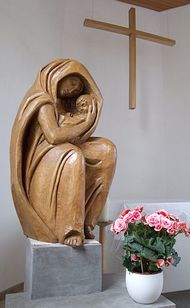 Trost: Reproduktion der Stalingradmadonna als Holzskulptur in der als Friedenskapelle geweihten Marienkapelle in Niedergailbach
