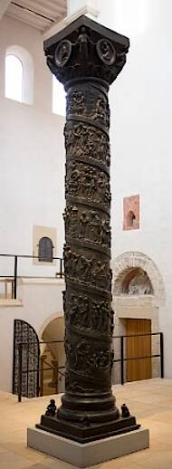 Es handelt sich um eine Ehrensäule, die Bernward in bewusster Nachahmung der Trajans- und der Mark-Aurel-Säule in Rom aus Bronze gießen ließ. Sind dort die Kriegstaten der Kaiser in spiralförmig sich aufwärts windenden Bilderfriesen dargestellt, so sind es hier die Friedenstaten Christi, beginnend mit der Jordantaufe und endend mit dem Einzug in Jerusalem. Gekrönt wurde die Säule ursprünglich von einem Triumphkreuz.