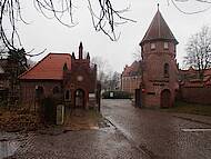 An der südlichen Grundstücksgrenze beim Vorburgbereich mit dem Marinelazarett Flensburg-Mürwik wurde 1911/1912 die Torwache errichtet. Insbesondere ihr runder Wachturm zeigt einen deutlichen Bezug zur Ordensburg Marienburg im Osten. Das Fußgängertor, neben dem breiten Eingangstor auf der Straße, besteht aus einem fialengekrönten Treppengiebelmauerwerk. Der direkt dahinterliegende Anbau mit dem Arkadendurchgang wurde erst später im Jahr 1927 hinzugefügt, fügt sich aber vollständig ein.