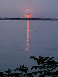 - Mondaufgang über Broager von Bockholmwtk aus gesehen im August 2025 (Foto: Joachim Becka)