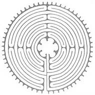 Am Anfang führt der Weg fast direkt auf die Mitte zu. Ich glaube mich dem Ziel ganz nahe. Aber in kurzen Schwüngen leiten mich die Kurven wieder von der Mitte weg, um mich im nächsten Moment dem Mittelpunkt wieder hoffnungsvoll nahekommen zu lassen. Dann führen mich die Linien in die "hinteren Reihen" des Labyrinths. Ich bewege mich immer weiter weg von der Mitte. In großen, weiten Schwüngen laufe ich die Ränder des Labyrinths ab, erst die linke, dann die rechte Hälfte. Einmal noch muss ich ganz an den Rand, um nach einer letzten Kurve die Mitte zu erreichen. Ein geheimnisvolles Symbol für unser Leben!