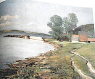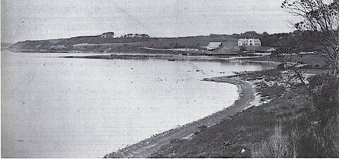 Als Matthias Kriegsmann in den 1870er Jahren diese Aufnahme machte, war die Mürwiker Bucht ein Idyll weit vor den Toren der Stadt. Die einzige Bebauung war ein Hof mit einer Ziegelei, und nur dieser und die Bucht im Vordergrund hießen Mürwik. Der Strand entwickelte sich zu einem beliebten Ausflugsziel, das im Volksmund »Klein Westerland« genannt wurde. Nach Stilllegung der Ziegelei wurde das Wohnhaus zum »Strand-Hotel«. Die Anlage des Marinestützpunktes links vom Hof änderte die Szenerie nach 1900 nachhaltig.